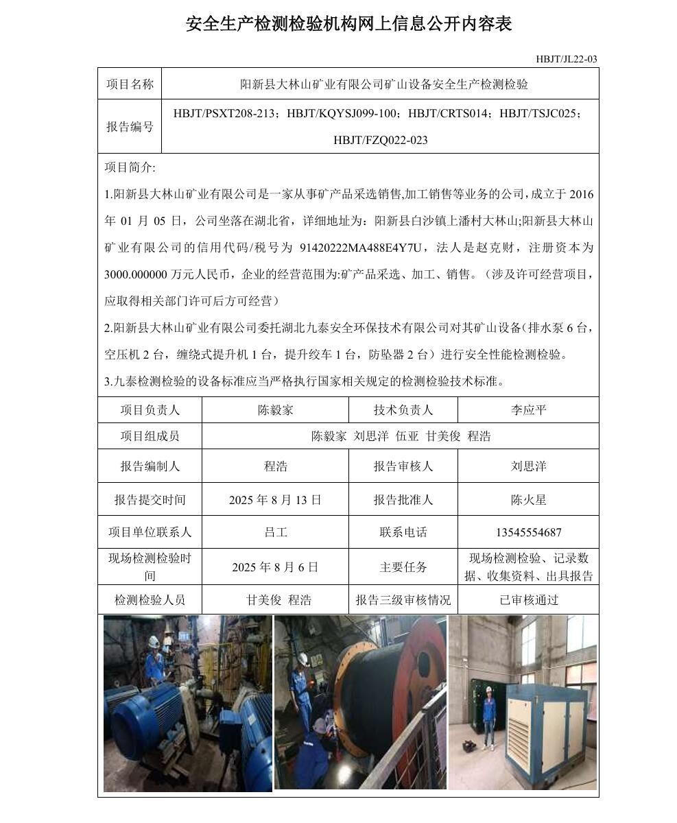 下一篇:?大冶市民復橋礦產品有限公司礦山設備安全生產檢測檢驗