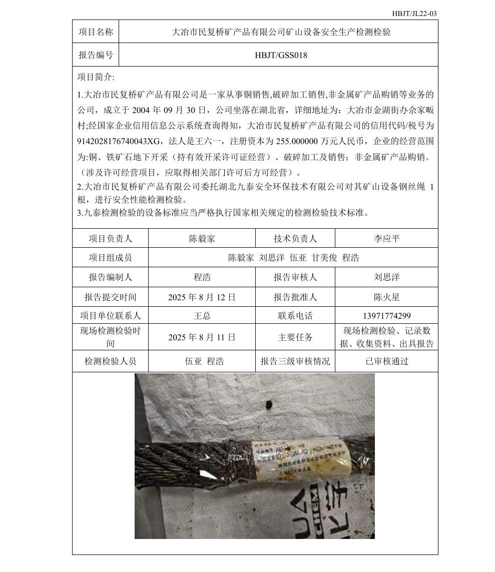 下一篇:?湖北華靈礦業(yè)集團(tuán)有限公司普慶鐵礦礦山設(shè)備安全生產(chǎn)檢測(cè)檢驗(yàn)
