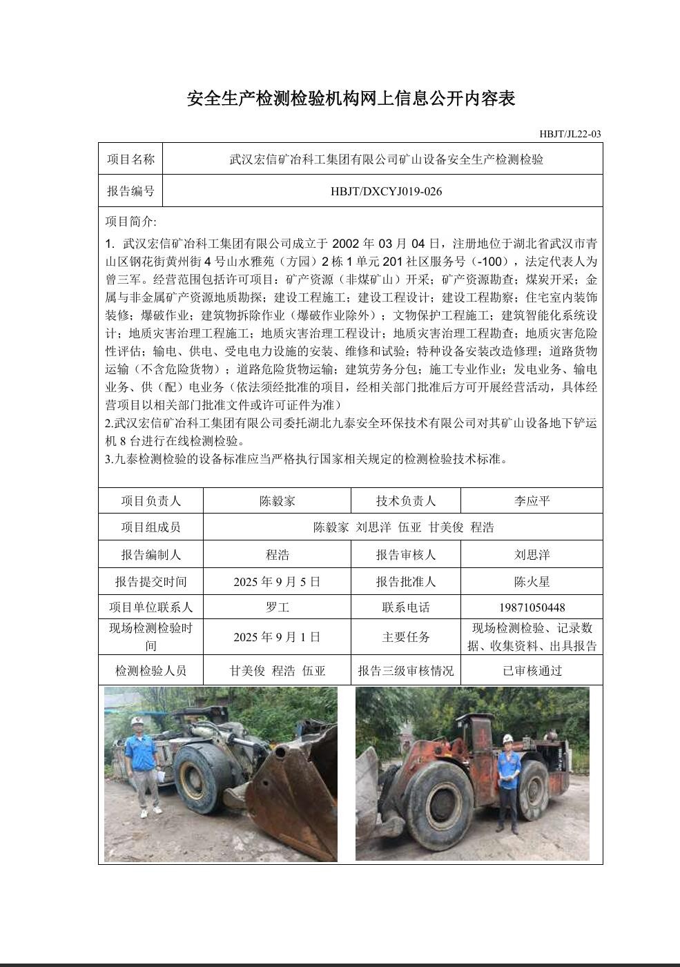 下一篇:?湖北歐冶礦業(yè)集團(tuán)有限公司礦山設(shè)備安全生產(chǎn)檢測檢驗(yàn)
